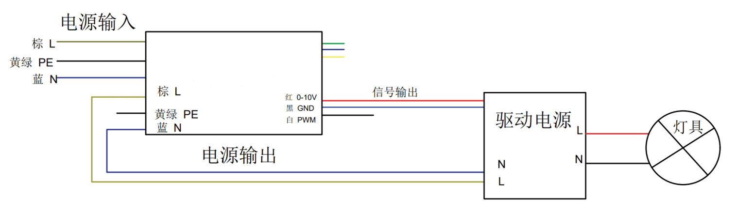 v 外设接口:支持1路220VAC输入,1路220VAC输出; 1路0-10V和1路PWM调光接口。(可定制隔离调光)