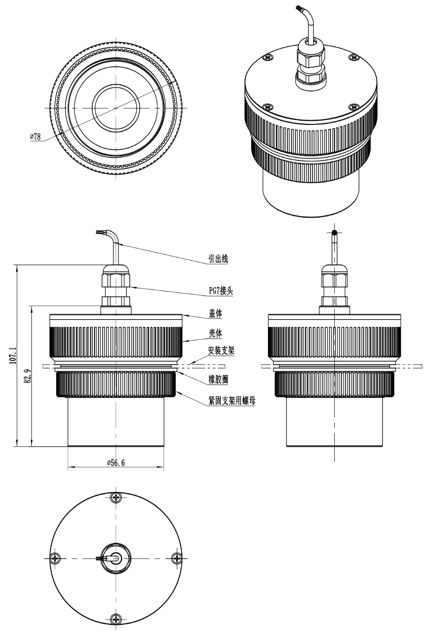电缆出线 | 4芯,2线电源和2线RS485; |